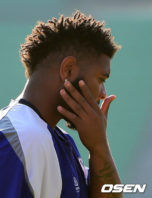 10일 오후 서울 잠실야구장에서 열린 '2014 한국야쿠르트 세븐 프로야구 포스트시즌' 삼성 라이온즈와 넥센 히어로즈의 한국시리즈 5차전, 경기에 앞서 삼성 나바로가 수비 훈련을 마치고 더그아웃으로 향하고 있다.