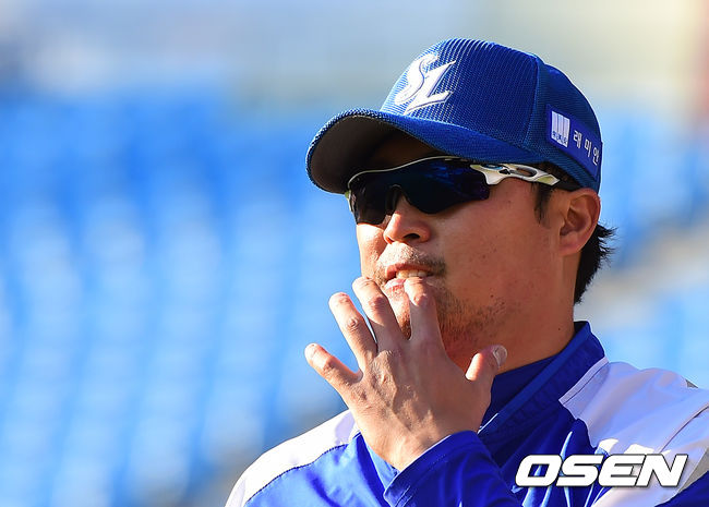 10일 오후 서울 잠실야구장에서 열린 '2014 한국야쿠르트 세븐 프로야구 포스트시즌' 삼성 라이온즈와 넥센 히어로즈의 한국시리즈 5차전, 경기에 앞서 삼성 박한이가 캐치볼을 하고 있다.