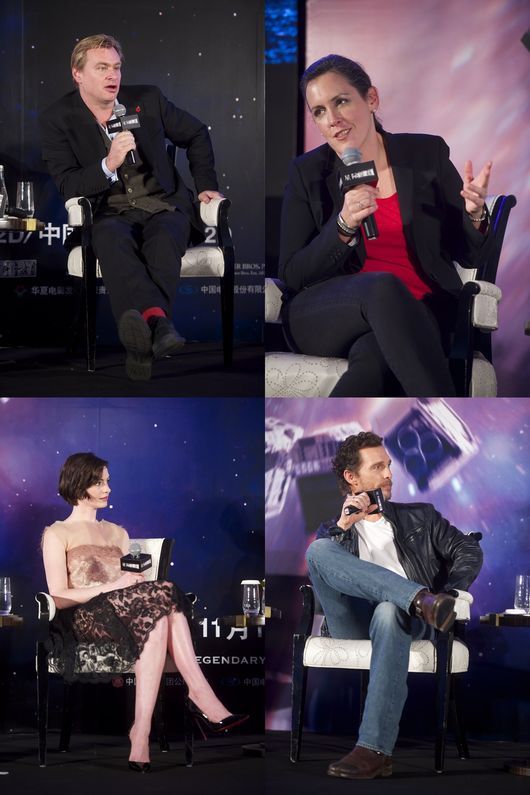 10일 중국 상해 더 페닌술라에서는 영화 ‘인터스텔라’ 아시아 기자회견이 진행됐다. 크리스토퍼 놀란 감독과 그의 배우자이자 제작자인 엠마 토머스, 배우 매튜 맥커너히와 앤 해서웨이가 참여해 취재진과 질의응답 시간을 가졌다.