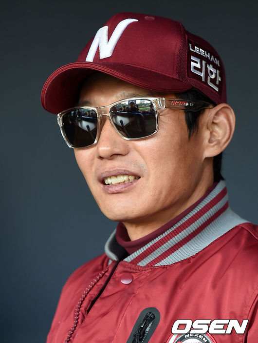 10일 오후 서울 잠실야구장에서 열린 '2014 한국야쿠르트 세븐 프로야구 포스트시즌' 삼성 라이온즈와 넥센 히어로즈의 한국시리즈 5차전, 경기에 앞서 넥센 염경엽 감독이 취재진과 이야기를 나누고 있다.