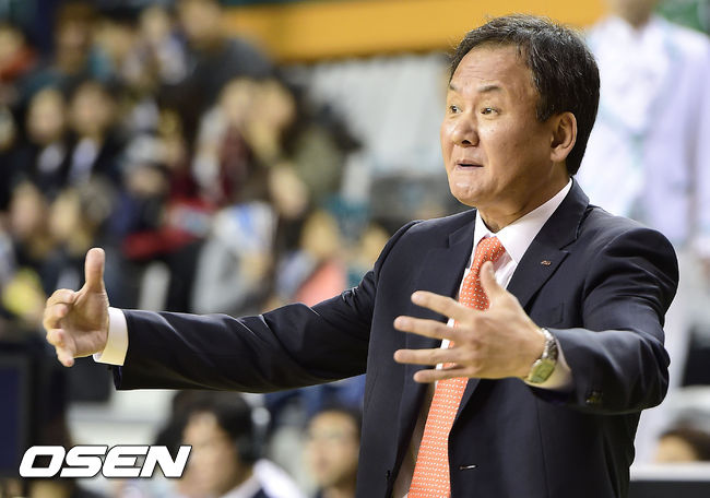 10일 오후 강원도 원주시 원주 종합체육관에서 열린 '2014-2015 KCC 프로농구' 동부 프로미와 모비스 피버스의 경기, 1쿼터 모비스 유재학 감독이 작전 지시를 하고 있다.