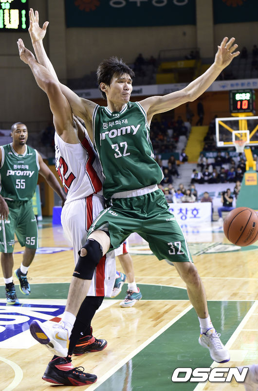 10일 오후 강원도 원주시 원주 종합체육관에서 열린 '2014-2015 KCC 프로농구' 동부 프로미와 모비스 피버스의 경기, 2쿼터 동부 김주성이 몸싸움을 펼치고 있다.