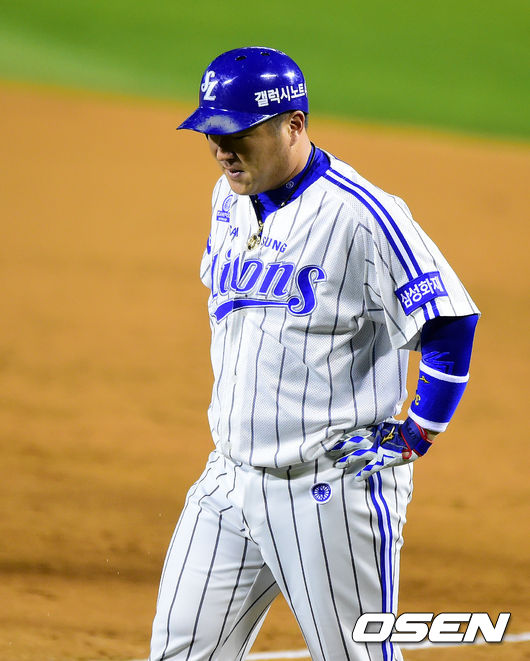 10일 오후 서울 잠실야구장에서 열린 '2014 한국야쿠르트 세븐 프로야구 포스트시즌' 삼성 라이온즈와 넥센 히어로즈의 한국시리즈 5차전, 3회말 1사 1루에서 삼성 최형우가 안타성 타구를 넥센 유한준이 몸 날려 잡아내자 아쉬워하고 있다.