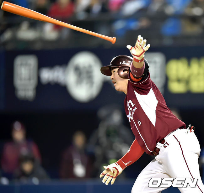 10일 오후 서울 잠실야구장에서 열린 '2014 한국야쿠르트 세븐 프로야구 포스트시즌' 삼성 라이온즈와 넥센 히어로즈의 한국시리즈 5차전, 6회초 박헌도가 안타를 치고 있다.