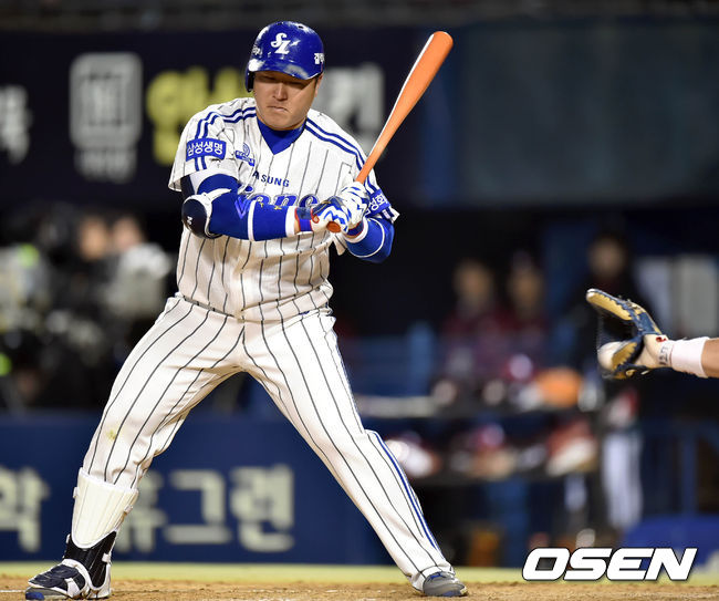 10일 오후 서울 잠실야구장에서 열린 '2014 한국야쿠르트 세븐 프로야구 포스트시즌' 삼성 라이온즈와 넥센 히어로즈의 한국시리즈 5차전, 6회말 선두타자 최형우가 루킹삼진 당하고 있다.