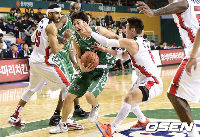 10일 오후 강원도 원주시 원주 종합체육관에서 열린 '2014-2015 KCC 프로농구' 동부 프로미와 모비스 피버스의 경기, 4쿼터 동부 허웅이 돌파를 시도하고 있다.