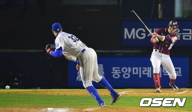 6회초 넥센 공격 1사 2루 상황 서건창이 선제 1타점 적시 우전안타를 날리고 있다.