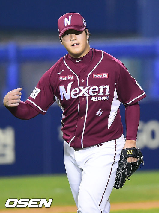 10일 오후 서울 잠실야구장에서 열린 '2014 한국야쿠르트 세븐 프로야구 포스트시즌' 삼성 라이온즈와 넥센 히어로즈의 한국시리즈 5차전,7회말 위기를 넘긴 넥센 조상우가 환호하고 있다.