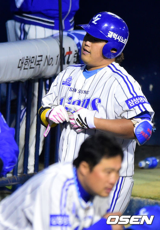 10일 오후 서울 잠실야구장에서 열린 '2014 한국야쿠르트 세븐 프로야구 포스트시즌' 삼성 라이온즈와 넥센 히어로즈의 한국시리즈 5차전, 8회말 무사 만루에서 삼성 박석민이 내야플라이로 물러나며 아쉬워하고 있다.