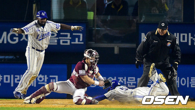 9회말 삼성 공격 2사 1, 3루 상황 최형우의 끝내기 2루타 때 1루 주자 김헌곤이 홈까지 내달려 세이프 되고 있다./dreamer@osen.co.kr