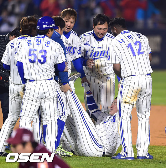 경기종료 후 삼성 선수들이 기뻐하고 있다. /soul1014@osen.co.kr
