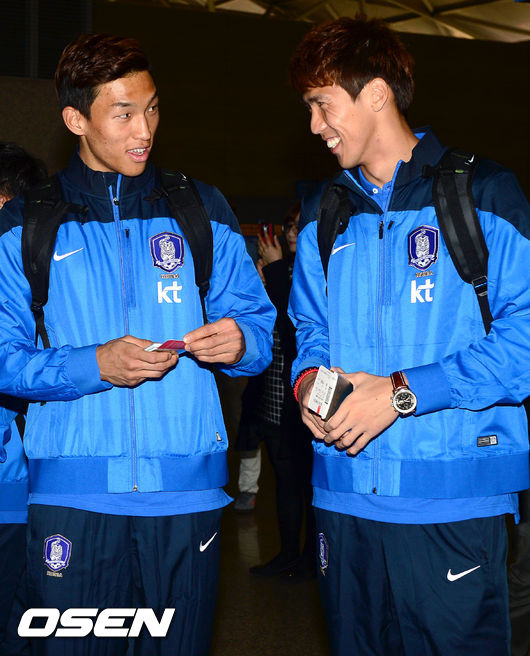 출국에 앞서 김승규 김진현이 이야기를 나누고 있다.