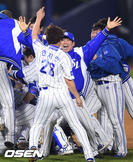 경기종료 후 삼성 선수들이 기뻐하고 있다. /soul1014@osen.co.kr