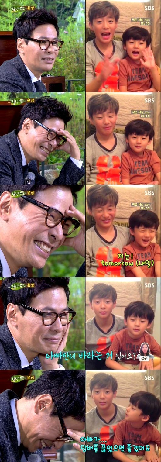 이때 아이들의 영상 편지가 도착했다. 윤상의 큰아들 찬영은 “아빠와 함께 찍은 사진을 볼 때 아빠가 가장 보고 싶다”며 “아빠가 담배를 끊었으면 좋겠다. 아빠와 여행을 다니고 싶다”고 전했다.