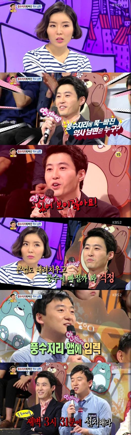 10일 오후 방송된 KBS 2TV 예능프로그램 '대국민 토크쇼 안녕하세요'(이하 '안녕하세요')에서는 풍수지리에 빠져 관련 앱을 맹신하는 남편을 답답해 하는 아내가 출연했다.
