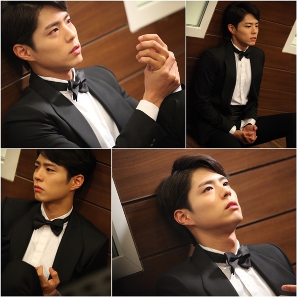 11일 공개된 사진 속에는 중요한 공연을 앞두고 극심한 손가락 통증에 괴로워하는 박보검의 모습이 담겼다. 박보검은 지금껏 본 적 없던 블랙 턱시도를 입고 바닥에 주저앉아 왼손을 감싸 쥐고 있다.