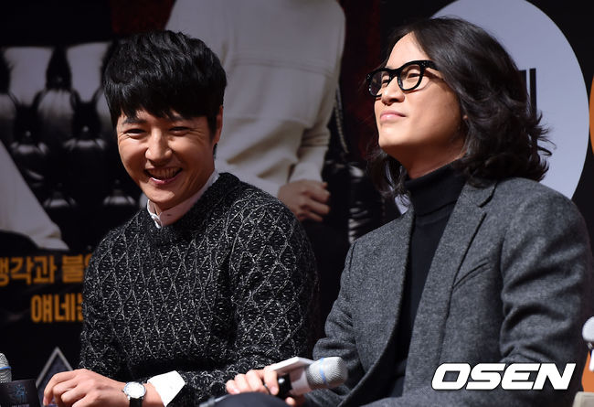 배우 윤상현와 송새벽이 미소를 짓고 있다.