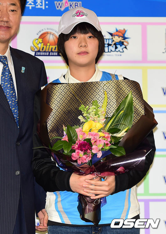 11일 오전 서울 여의도동 63컨벤션센터에서 열린 2015 WKBL 신입선수 선발회에서 1라운드 하나외환에 지명된 이하은이 기념촬영을 하고 있다.