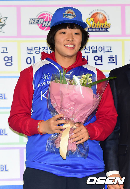 11일 오전 서울 여의도동 63컨벤션센터에서 열린 2015 WKBL 신입선수 선발회에서 1라운드 KDB 생명에 지명된 홍소리가 기념촬영을 하고 있다.