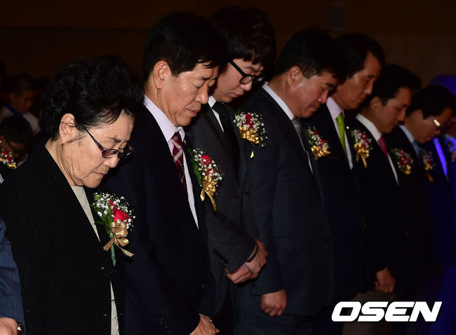 이대호가 최동원 어머니 김정자 여사가 묵념을 하고 있다.