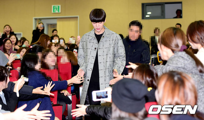 행사에 참석한 배우 안재현이 팬들과 인사를 나누며 입장하고 있다.