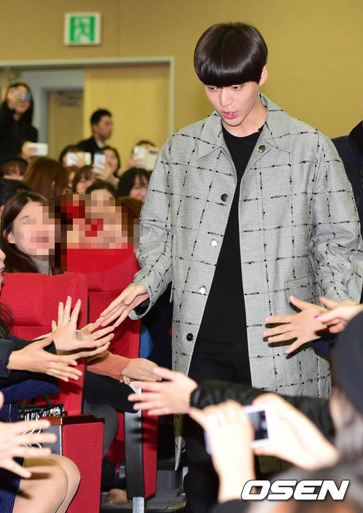 행사에 참석한 배우 안재현이 팬들의 환영을 받으며 입장하고 있다.