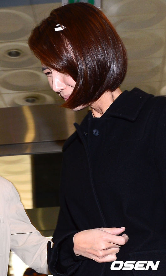 故신해철의 부인 윤원희 씨가 11일 오후 송파경찰서에 고인의 사망 경위 관련 조사를 받기 위해 출석하고 있다
