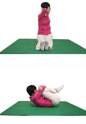 또 몸을 둥글게 말아 뒤로 넘어졌다 일어나는 방식으로 구르는 동작도 있다. 모든 동작은 5회 반복하면 좋다.