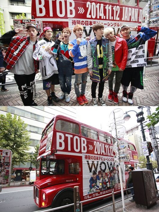 런던에서나 볼법한 빨간 2층버스는 비투비의 일본 데뷔를 기념하고, 첫 싱글 '와우'의 대대적 홍보를 위해 동원, 특수 제작된 차량. 50여년의 역사를 자랑하는 런던풍 2층버스의 빨간 벽면에 비투비의 재킷 이미지를 담아 귀여움을 더한 이 버스는 깜찍한 외관처럼 현지 젊은 층의 시선을 단숨에 사로잡으며, 특별한 볼거리를 제공하고 있다.