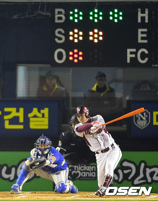1회말 넥센 공격 1사 주자없는 상황 이택근이 삼성 선발 윤성환의 공에 헛스윙 삼진을 당하고 있다.