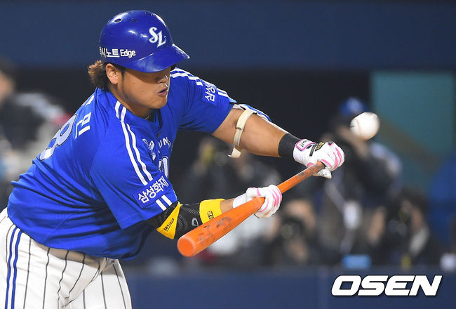 11일 오후 서울 잠실야구장에서 열린 '2014 한국야쿠르트 세븐 프로야구 포스트시즌' 삼성 라이온즈와 넥센 히어로즈의 한국시리즈 6차전,2회초 무사 1루 삼성 박석민이 번트를 시도하고 있다.
