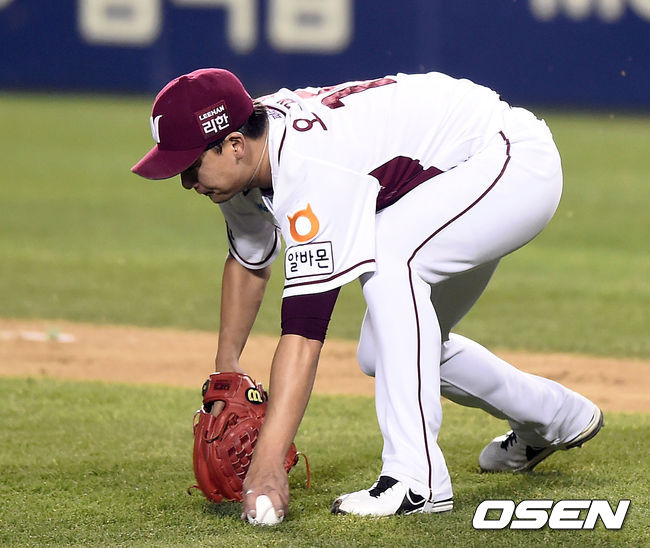 11일 오후 서울 잠실야구장에서 열린 '2014 한국야쿠르트 세븐 프로야구 포스트시즌' 삼성 라이온즈와 넥센 히어로즈의 한국시리즈 6차전, 3회초 무사 1루에서 넥센 오재영이 김상수의 번트 타구를 잡고 있다.