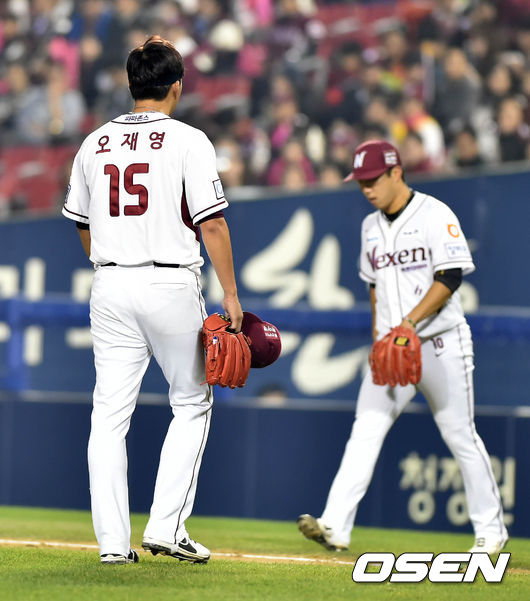11일 오후 서울 잠실야구장에서 열린 '2014 한국야쿠르트 세븐 프로야구 포스트시즌' 삼성 라이온즈와 넥센 히어로즈의 한국시리즈 6차전,3회초 실책과 안타로 2실점 한 오재영이 마운드를 내려가고 있다.