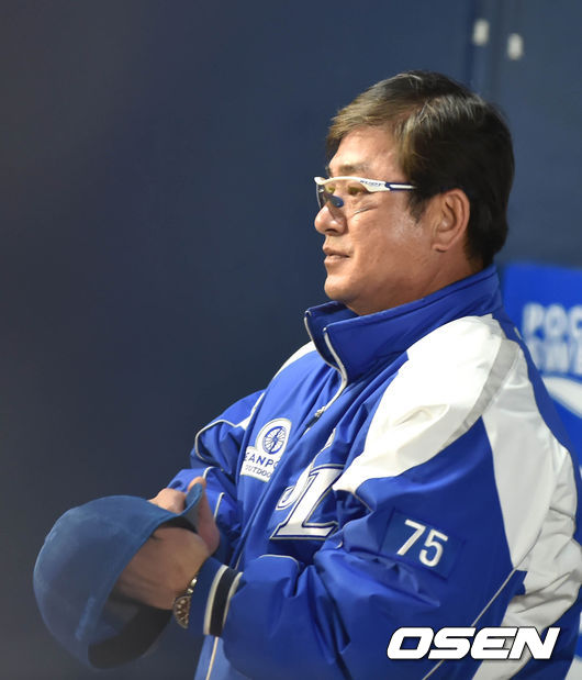 11일 오후 서울 잠실야구장에서 열린 '2014 한국야쿠르트 세븐 프로야구 포스트시즌' 삼성 라이온즈와 넥센 히어로즈의 한국시리즈 6차전,3회초에 4 득점 한 삼성 류중일 감독이 여유로운 포습으로 경기를 지켜보고 있다.