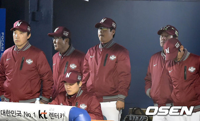 11일 오후 서울 잠실야구장에서 열린 '2014 한국야쿠르트 세븐 프로야구 포스트시즌' 삼성 라이온즈와 넥센 히어로즈의 한국시리즈 6차전,3회초 4점을 내준 넥센 더그아웃 분위기가 무겁다.