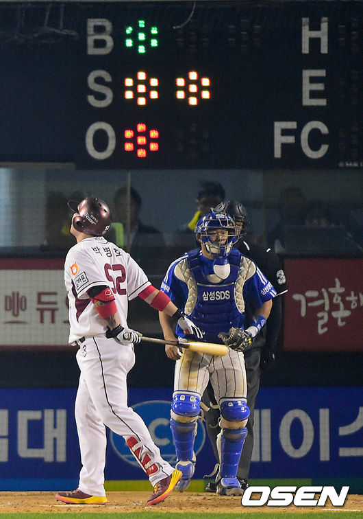 4회말 넥센 공격 1사 3루 상황 박병호가 삼성 선발 윤성환의 공에 헛스윙 삼진으로 물러나고 있다.