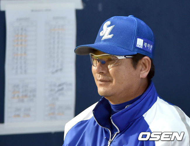 11일 오후 서울 잠실야구장에서 열린 '2014 한국야쿠르트 세븐 프로야구 포스트시즌' 삼성 라이온즈와 넥센 히어로즈의 한국시리즈 6차전,6회초 무사 1,2루 나바로가 스리런 홈런을 치자 류중일 감독의 입가에 미소가 번지고 있다.