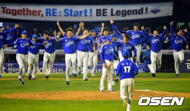 한국시리즈 우승으로 통합 4연패의 대기록을 세운 삼성 선수들이 그라운드로 달려나오며 한국시리즈 우승의 기쁨을 나누고 있다./dreamer@osen.co.kr