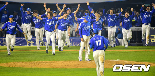 환호하는 삼성,'언제나 짜릿한 한국시리즈 우승!'