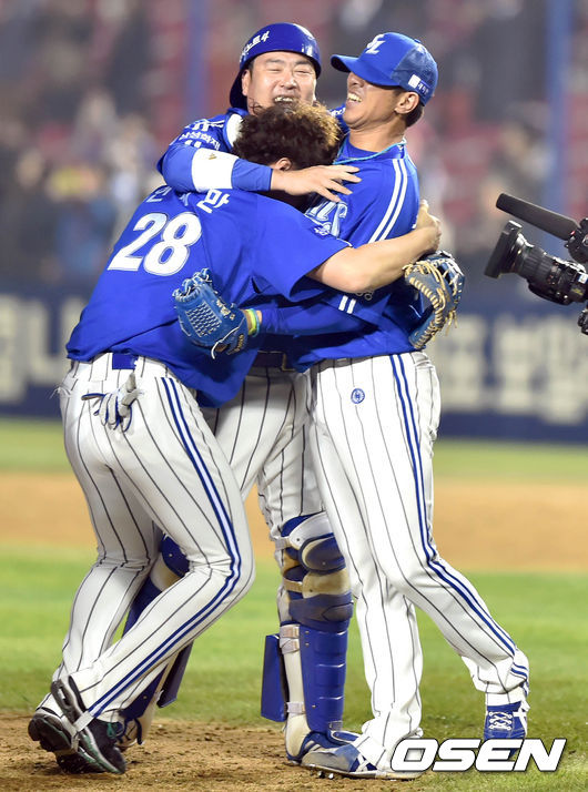한국시리즈 우승으로 통합 4연패의 대기록을 세운 삼성 선수들이 한국시리즈 우승의 기쁨을 나누고 있다./sunday@osen.co.kr
