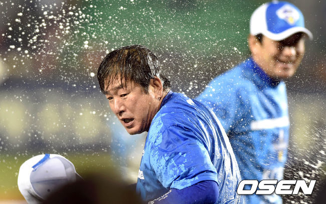삼성 라이온즈 통합 4연패 우승 류중일,'샴페인 좀 고마해라'