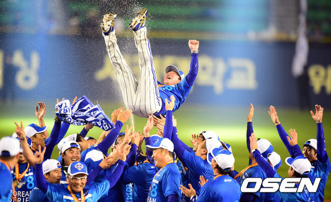한국시리즈 우승으로 통합 4연패의 대기록을 세운 삼성 선수들이 한국시리즈 우승의 기쁨을 나누고 있다./jpnews@osen.co.kr