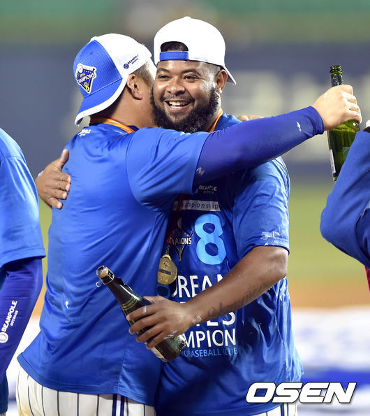 한국시리즈mvp 나바로와 최형우의 뜨거운 포옹