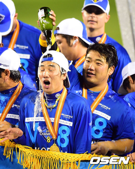 한국시리즈 우승으로 통합 4연패의 대기록을 세운 삼성 선수들이 한국시리즈 우승의 기쁨을 나누고 있다./jpnews@osen.co.kr