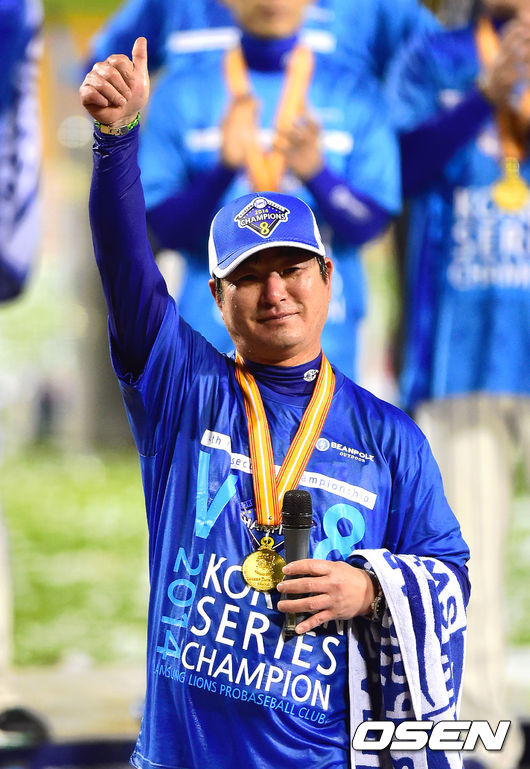 류중일 감독,'통합 우승 4연패 기분 최고야'