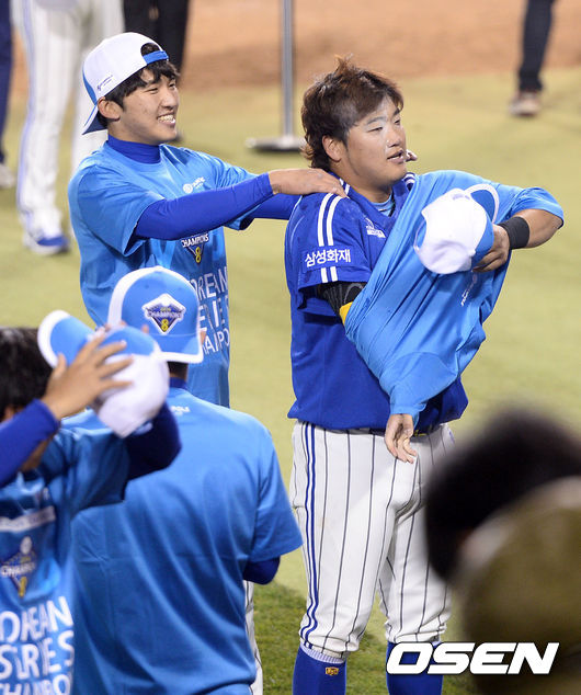 한국시리즈 우승으로 통합 4연패의 대기록을 세운 삼성 박석민이 우승 티셔츠를 입고 있다./ sunday@osen.co.kr