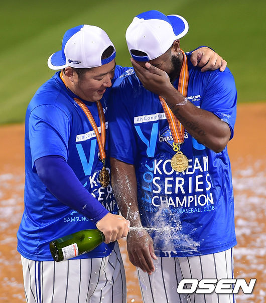 한국시리즈 우승으로 통합 4연패의 대기록을 세운 삼성 선수들이 한국시리즈 우승의 기쁨을 나누고 있다/soul1014@osen.co.kr
