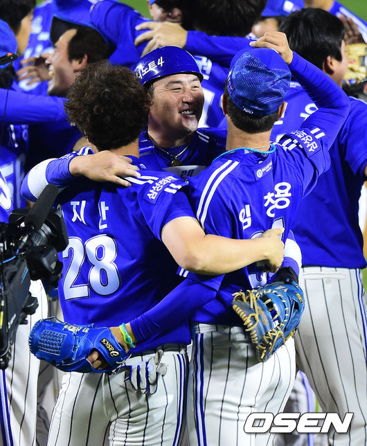 한국시리즈 우승으로 통합 4연패의 대기록을 세운 삼성 선수들이 한국시리즈 우승의 기쁨을 나누고 있다./jpnews@osen.co.kr