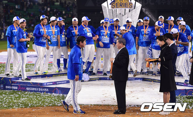 한국시리즈 우승으로 통합 4연패의 대기록을 세운 삼성 선수들이 한국시리즈 우승의 기쁨을 나누고 있다/soul1014@osen.co.kr