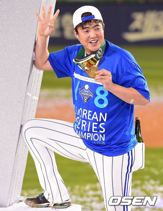 통합 4연패 삼성 안지만,'진화하는 우승 포즈'